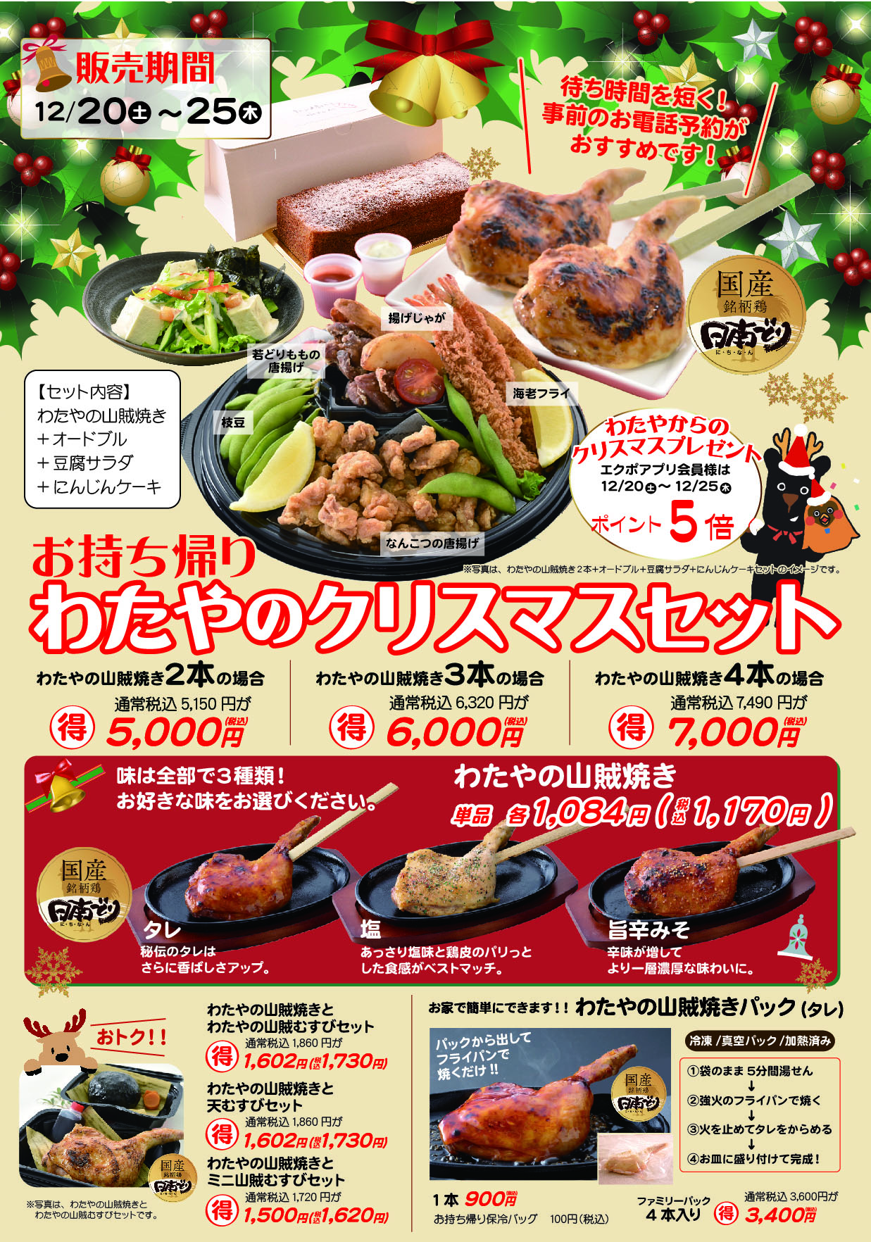 田舎茶屋わたやのクリスマスチキンは、もちろん『わたやの山賊焼き』!