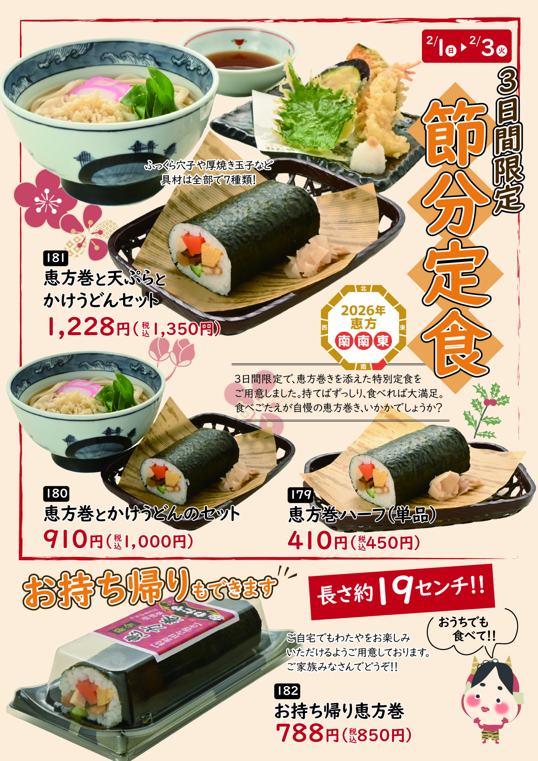 恵方巻がハーフサイズになって、メニューとして登場!