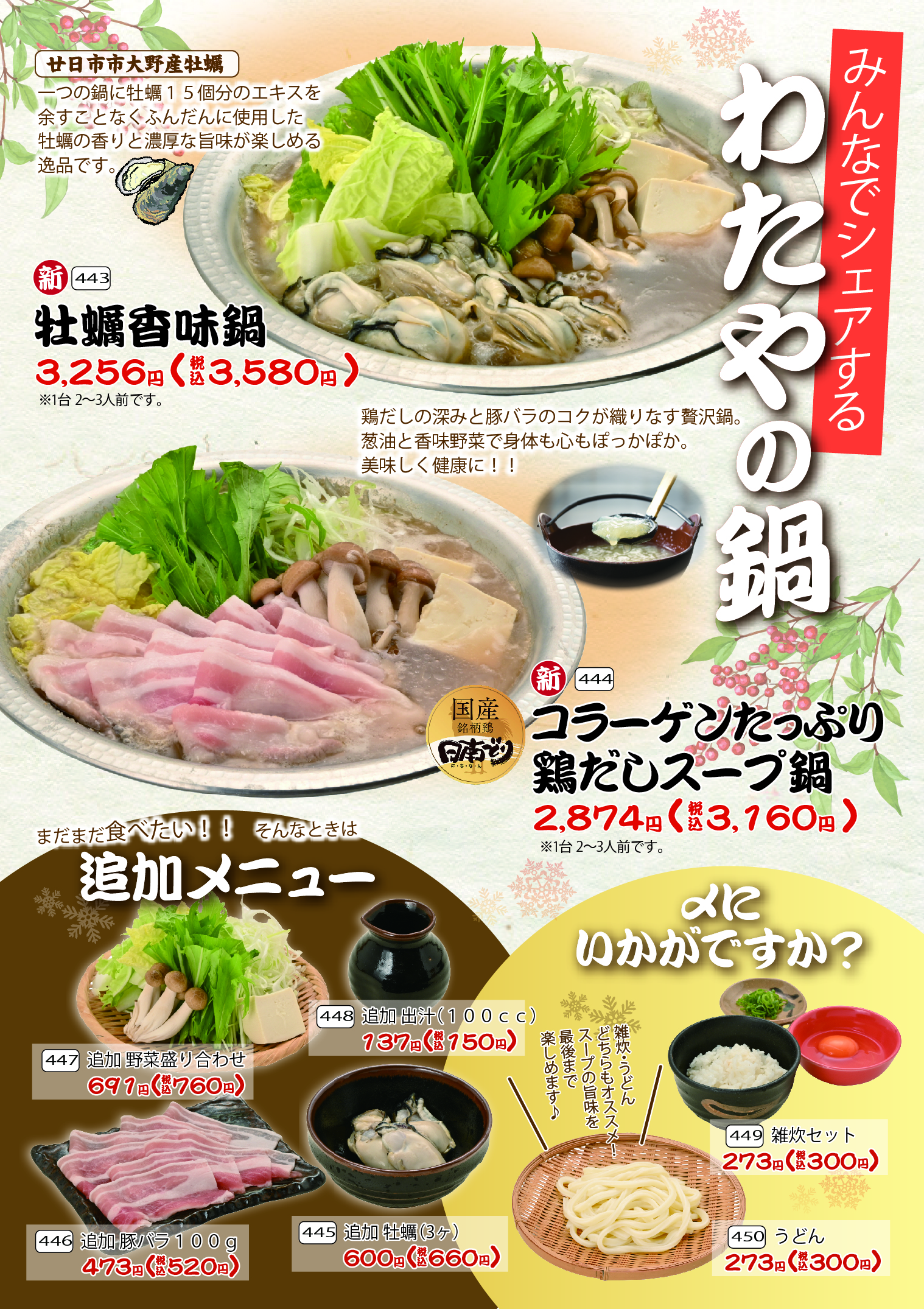 わたやの鍋メニュー大好評発売中です。